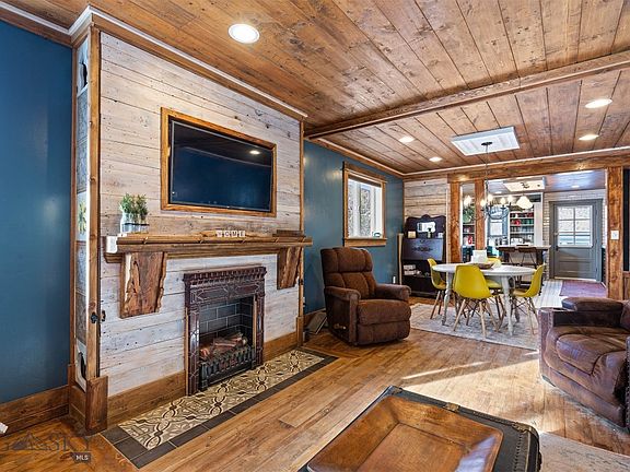 This wonderful home is located on a Great corner lot, with mature trees and underground sprinklers! Fully fenced. This 4 Bed 2 Bath home features a larger living room, with nice natural light coming through the large windows. Beautiful great room. Spacious 2 car garage, with wood work shop inside. Both a covered Patio and covered Porch. Single level living, with extra living in the basement. Main floor has custom wood floors, many Montana rustic accents and a beautiful kitchen! Schedule your showing today!