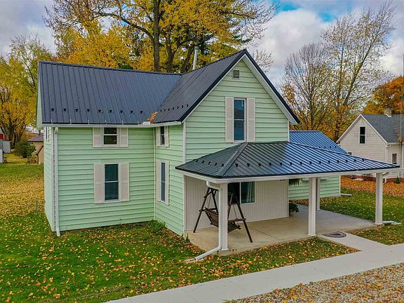 Beautiful remodeled 4 bedroom 1 bath home at the south=west edge of the small town of Roann. Home has been completely remodeled with new metal roof, soffits, fascia, gutters and downspouts, new covered front porch, all new windows, new wiring and 100 amp panel box, new pex plumbing. Older gas furnace but new central air. New water heater. New water softener. New bath with a walk-in shower. All new kitchen cabinets, counter tops and new appliances including washer & dryer. All new floor coverings. Mostly new drywall and ceilings. All new light fixtures & ceiling fans. All new paint. New concrete sidewalks. Garage is 16' x 24' plus an attached 10' x 20' workshop. New metal roof and metal slider door on the garage. New electrical outlets and lighting in the garage.