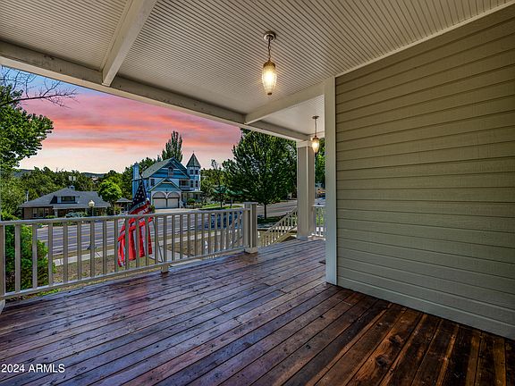 Step into a piece of Prescott history at 230 S Mt. Vernon Ave, a captivating home that beautifully marries timeless charm with modern comforts. Nestled in the heart of Prescott's historic district, this enchanting residence exudes character & sophistication, presenting a unique opportunity for those seeking a home that tells a story. The first thing you'll notice is the picturesque L-shaped covered porch. Wrapped in stained wood decking & classic white railings, it invites you to relax & soak in the serene surroundings that this historic neighborhood provides. Inside, the warmth & allure continue with preserved touches from its original 1914 architecture. The expansive great room serves as the heart of the home, seamlessly blending classic elegance with contemporary style. A cozy gas fireplace, recessed lighting, & a striking coffered ceiling set the stage for gatherings & quiet evenings alike. Double doors beckon you to the side porch, effortlessly connecting indoor & outdoor living spaces. The great room flows into the gourmet eat-in kitchen that's a chef's dream! Featuring a spacious island with a breakfast bar, a farmhouse sink, stone countertops, & a classic tile backsplash. Imagine preparing meals on the industrial Kucht Professional stove while basking in the beauty of two-toned cabinetry that stretches to the ceiling, ensuring ample storage without sacrificing style. The primary suite offers a private sanctuary. Double doors open to the porch, where you can enjoy tranquil mornings or relaxing evenings. The en-suite bathroom rivals a spa retreat, featuring dual vanities, a walk-in shower with marbled elegance, & a soothing jacuzzi soaking tub. The primary bathroom leads into an oversized walk-in closet, perfect for all of your storage needs. Functionality meets convenience in the thoughtfully designed mudroom, equipped with a washer, dryer, on-demand hot water system, & utility sink. This practical space cleverly accommodates the needs of modern living. Elevating this property is a separate coach house in the backyard, perfect for guests, multi-generational living, or rental income potential. With its own bedroom, living room, full kitchen, bathroom, & washer & dryer, the coach house provides privacy & versatility, complete with its own parking & patio space. This exceptional home stands out as a true treasure, offering a perfect blend of historic charm & contemporary amenities. Don't miss out on the opportunity to experience the unique character, comfort, and style of this Prescott gem!