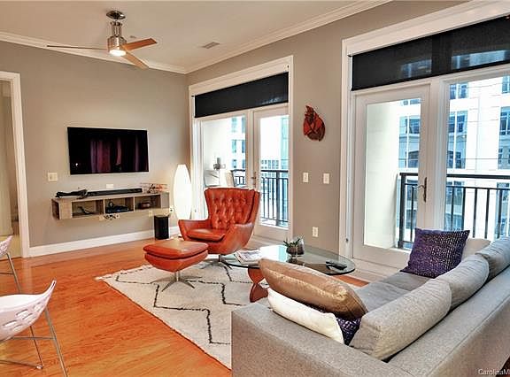 Luxury building in the heart of uptown Charlotte, with ease to work, shopping, restaurants, and stadiums. This condominium boasts quartz countertops, expansive balconies (gas grill hookup), stainless steel appliances, upgraded cabinets, lighting and fixtures and hardwoods throughout the main living area. Building amenities include a large fitness center, club room, cyber café, concierge, chic lobby and swimming pool.
