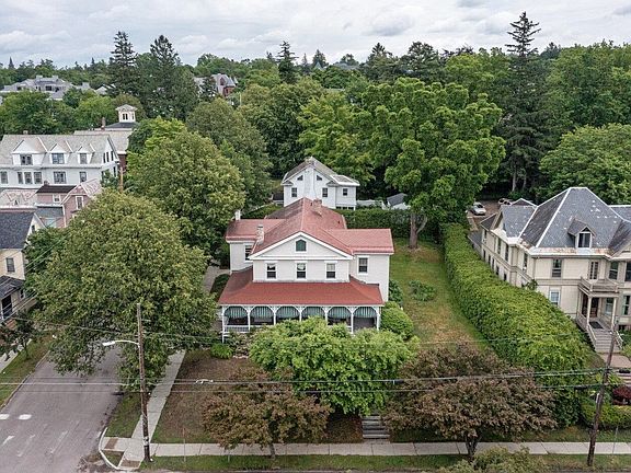 This stately grand home was the residence of Burlington’s first mayor, Albert Catlin, in 1865. With 10 foot coffered ceilings, an intricate parquet floor in the dining room, stunning curved front staircase, and gorgeous woodwork throughout, this home is truly a unique property! It offers the best of both worlds: old world charm with numerous major updates over the years that make it work for contemporary living. A gracious veranda wraps around the front of the home with access from living and family rooms. Another covered porch faces south over the backyard and is accessed from the dining room. These covered porches offer 800 sq. ft. of outdoor living space. The first floor boasts expansive living spaces with oversized windows for generous natural light. The large kitchen has a breakfast nook facing south with additional closets for storage. The upstairs is accessed from two staircases and has four generous bedrooms with ample closets, 2nd floor laundry room, great linen/storage closet, and updated guest bathroom. The primary suite is flooded with light and has a large walk-through closet and primary bath. A walk-up attic offers additional storage and potential expansion. Basement offers additional storage, workshop, and access to garages. A rare opportunity to own a piece of Burlington’s history with this incredible Hill Section home!