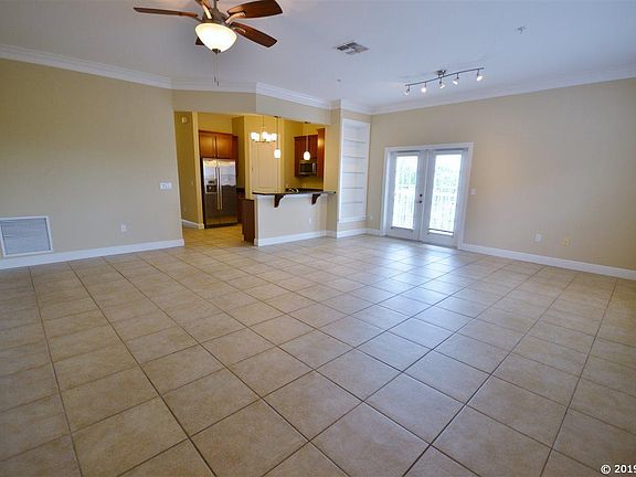 Walk to Downtown and Bike to UF and Shands Hospital! Ultra luxurious and spacious TOP FLOOR CORNER END UNIT in the most upscale luxury community near UF & Downtown! Concrete block construction with 10-Foot ceilings, 8 foot doors, gourmet kitchen with granite countertops, custom wood cabinets, and stainless steel appliances! Spacious tiled living room with crown molding, and Large bedrooms with upgraded laminate flooring, huge walk-in closets and granite counters in both bathrooms. Upgraded Sound proof windows in the bedrooms. Large master bedroom has French Doors that open up to lovely balcony with gorgeous views. Freshly painted and one of the largest units in the building! Community features electronic gated access and a private pool. Includes 2 parking passes for parking garage attached to building!