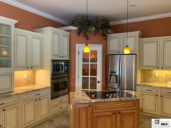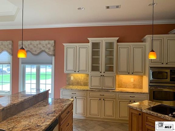 All are invited to come see the custom built one story home (first time on the market) situated on beautiful part of the water. This luxurious Mediterranean style home offers the water view from every room. The Kitchen is in the heart of this home with its wrap around style, this gourmet kitchen makes entertaining large group or small few friends effortless. It offers granite tops, cute walk in pantry, down draft oven and bar that seats many. It is joined with a cozy living area that makes watching the games or just visiting with company a breeze. Speaking of breeze, Open the patio doors right off the kitchen and walk to your outdoor kitchen. You can sit outside and enjoy eating watermelon while watching the big screen, then jump in the in ground salt water pool or sit by the wood burning fireplace for those chilly evenings. Each guest room is complete with their own spa like bathrooms. The left wing hides the private spacious Master bedroom and bathroom. This On suite features a center jetted tub, or, if you prefer the custom tiled walk in shower. Separate master vanities and walk in closets. Let the dogs run free in the fended in backyard while you catch some fish from our pier.