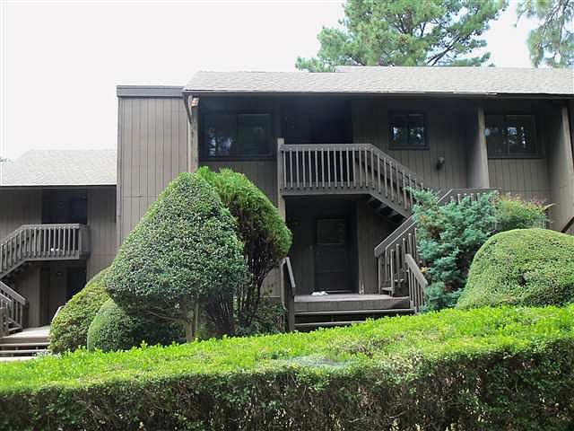 Pinehurst Golf Condo. Extraordinary location on #5 course, golf and pond view and lots of updates--Brand NEW furniture, NEW flat screen TV, NEW paint, NEW carpet,NEW tile, NEW appliances, NEW interior doors, wonderful NEW kitchen with granite tops, maple cabinets and stainless appliances, bathroom updates include new vanities, sinks, toilets, light fixtures and now gorgeous new window treatments have been added. Great US Open rental, convenient to everything in Pinehurst! and it is rental ready. Pinehurst Club Membership available with buyer paying prevailing transfer fee. If you saw this one before, be sure and stop by and see it again with the new window drapes! Beautiful!! 3/4s of the way to end of complex, upstairs.