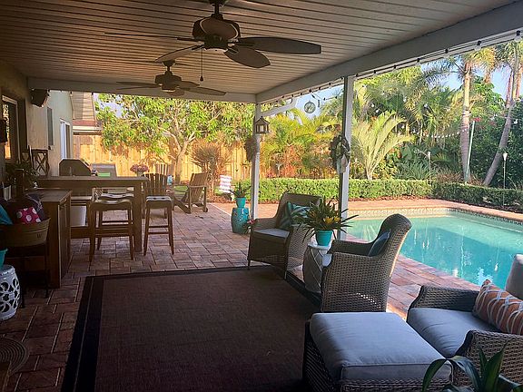 Rare find, 4 bed, 3 bath pool home that has been completely remodeled within walking distance to the beach! Within the last few months the master bathroom, guest bath and flooring throughout the house has been updated, along with the master bedroom to include a walk in closet. The kitchen with quartz counters and appliances are less than 3 years old, along with all sliders in the home. All windows replaced in 2012. The backyard is an oasis with amazing landscaping that was made for entertaining with a pool, multiple lounge areas, a firepit and a hot tub with bluetooth speakers built in under a custom pergola. In addition, there is a pavered area on the side yard for possible boat parking. New roof 2019, New 5-ton Trane air conditioner 2023.