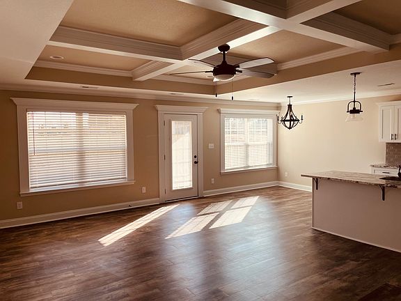 This lovely family home is located at one of the higher elevations in Royal Oaks subdivision. The home features beautiful coffered ceilings in the master suite & living room, extensive trim work and solid surface counter tops throughout, stainless appliances and gorgeous lightings. You also will appreciate the walk-in shower in the owner's suite along with a large walk-in closet, covered back porch, large laundry room, pantry, and a split bedroom plan. Thank you so much for your interest. Renter is responsible for all utilities. Last month's rent due at signing. No smoking allowed.