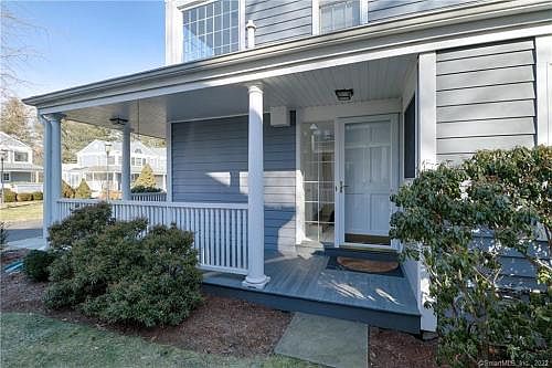 Enjoy life in this sun filled townhome within walking distance to Metro North and minutes to restaurants, shopping, town and beach The inviting wrap around front porch greets you before you step inside to the foyer. A spacious living room offers hardwood floors, a fireplace, vaulted ceiling, a dining area and sliders leading to the lovely patio. The bright eat in kitchen has newer stainless appliances and skylights. A half bath and laundry complete this level. Upstairs you will find the master suite with a vaulted ceiling, sliders to a private balcony/deck, a dressing area with two closets and a large, updated master bath. The secondary bedroom offers built in bookcases, a vaulted ceiling and a recently renovated ensuite bath. The entire unit has been freshly painted with brand new carpeting upstairs. Gas heat and an attached one car garage. So much to love here
