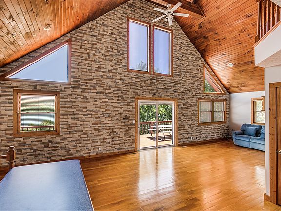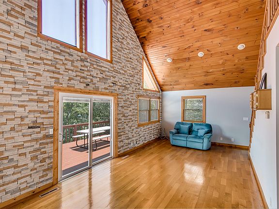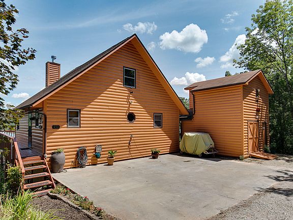 First time this lake home is on the market! Talk about an incredible view! This 2001 cabin/lodge has a view with a large outdoor feel. Sit in your living room and look out at the lake all day every day. Corp of engineers owns up to the property so it is considered lake front even though there are a row of homes between the docks and Cabin. You still have a full un-obstructed view, and never have to worry about flooding or flood insurance. There are 2458 sq foot of a heated and cooled living area. There is a lower covered deck coming off of the walk out basement. There is spacious balcony on the main level. After 2 pm, the balcony is shaded and perfect for outdoor entertaining. The loft has closets and a window to be able to be used for a bedroom. The way it is set up, you can still be able to wake up and see the lake. The cathedral ceiling has a stone wall leading all the way up to draw your eyes up and really grasp how big and airy this home feels. Coming home, you walk into what feels like a vacation get away but is still conveniently located, not too far from out of town. This home comes with a two story workshop that is wired with movable units to help it be heated/cooled. Perfect for a golf cart. The parking pad is mostly level and can fit 4 vehicles! There is a small raised garden bed out of site, easily accessible. They have rain barrels to help with conserving water. This HVAC is 2 years old, and is also green and rated well above 90! It has a programmable thermostat. The owners are very clean and have done and excellent job keeping up with preventative home maintenance. There is a community walking path down to the docks. You can take golf carts or quads down to them. 10x 20 slip available below home. Slip and lift available for sale separate at 17,000. Slip number 6 dock 16. All appliances heating sources, fridges, freezer, microwave, etc., stay!! Come view this home with lots of view and a ton of storage to cover all your wishes, wants, and needs.