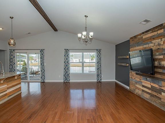 Great views from this 3 Bed 2 Bath home in Turtle Cove. This home boasts a split floor plan, hardwood floors throughout the Livingroom and Kitchen, Granite Counter Tops & Stainless-steel appliances, and Vaulted/beam ceilings in Living room. In the Master bedroom there is a Tray Ceiling, Bay Window overlooking water in the back, separate tub/show, double sinks and a large walk-in closet. On the exterior enjoy the screened in porch, patio, and already fenced in yard. The community also has a pool for those hot summer days. Seller will convert the garage back if requested.