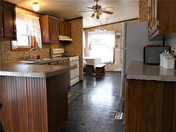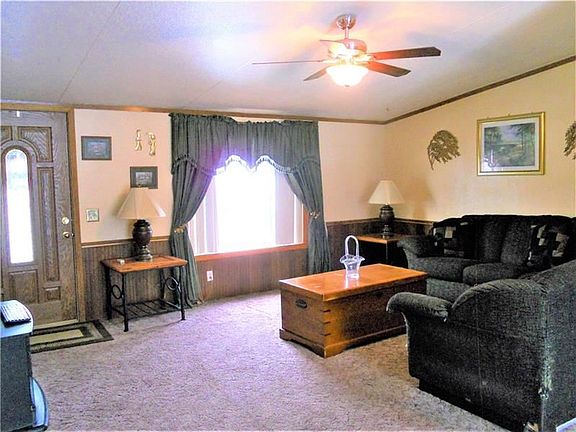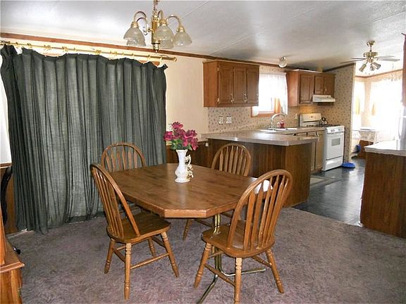 Manufactured home on full foundation on level lot. The covered front porch welcomes you inside to an open floor plan. Spacious kitchen with pantry, gas stove, refrigerator. Side door to porch. The Laundry room is located off the kitchen. Living room has bay window and is open to the Dining Room with sliding door to deck and level back yard with above ground pool and shed. Full unfinished basement lead to many opportunities. Enough room to park six cars in driveway.