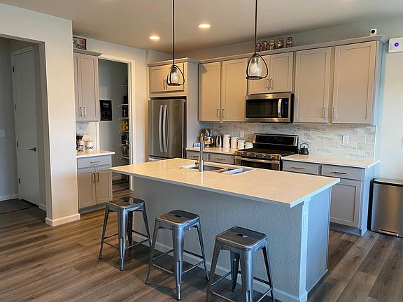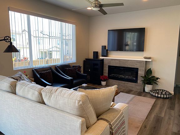 This home is in the Terrain neighborhood with access to swimming pools and a dog park. It is in walking distance to King Soopers and within three miles from downtown Castle Rock. The home is near the middle of the neighborhood and away from the main roads which keeps traffic noise down. The house was constructed in 2021 and is very well maintained. It contains many upgrades like 9 foot ceilings, ceiling fans, a double gas range, stainless appliances, quartz counters in the kitchen, and an epoxy garage floor. The main level features an open floor plan with plank flooring throughout. It contains the living room featuring an electric fireplace, kitchen, walk in pantry, and half bath. A large double sliding door opens to a good sized fully fenced and landscaped backyard and patio. The high ceilings and increased height doors continue upstairs to the laundry room, two guest bedrooms, a guest bathroom, and a large master suite including a double vanity, shower, bathroom, and a large walk in closet. The basement is finished with an additional bedroom, full bathroom, and a large entertainment area. It also features a storage area with built in shelving. The two car garage is fully dry-walled, has an epoxy floor, and is increased depth with room for things like toolboxes or cabinets. Up to two small adult dogs are ok with pet rent and a refundable pet deposit. Breed restrictions apply. Tenant is responsible for maintaining the yard along with snow removal. Owner pays for the HOA and trash. No smoking inside. Renters insurance is required.