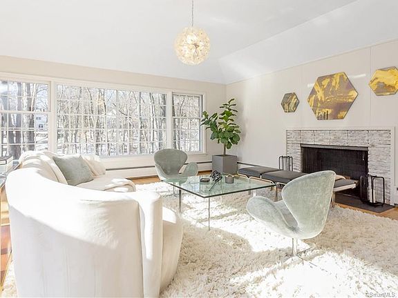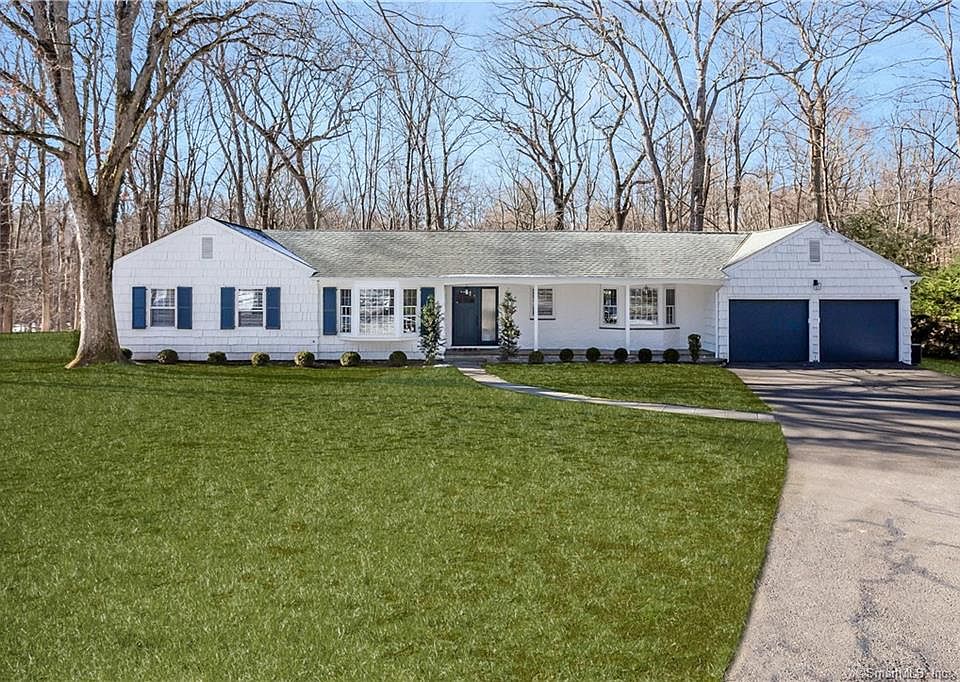Thoughtfully updated and renovated for modern living, this light and bright turn-key home is attractively sited on a private acre in Mid Country! Open kitchen and dining room lead to a spacious living room with sensational year-round views. Office with private entrance located at the front of the home. Four bedrooms and 2.5 bathrooms complete the first floor. Walk out lower-level features bonus room and fireplace. Freshly painted interior and exteriors. Refinished hardwood flooring throughout. 2 bluestone patios, outdoor fireplace and large yard are perfect for indoor/outdoor living. Substantial room for expansion. North Street School. Close proximity to the new GCDS Stanwich Campus, and just minutes to town, the train, and schools. Single floor living at its finest! Please do not go on the property without a scheduled appointment.