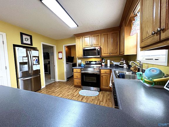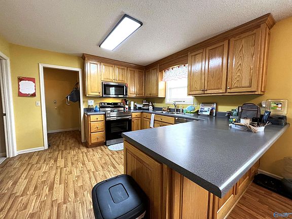 Need a Mini Farm? Now you have found it!! Move in ready low maintenance 3 bedroom, 2 bath rancher! Chicken coop in own fencing & layers to come w/ farm. 6 miles from Guntersville state park & boat launch. Fenced pasture w/ pond stocked w/ bass at catfish. Also has cover for the horses, detached 25x20 workshop, fenced in back yard, storm shelter & attached garage w/ workshop!!! Isolated master suite w/ walk in closet, large kitchen w/ lots of counter space, pantry, bar & eat in area. Lg family room that leads to back porch & flagstone patio. Seller says carpet has been replaced. Corn, cantelope, potatoes and carrots are already planted in the garden & ready for next family. A must see!!!!