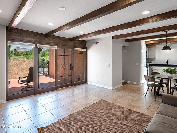 Cute-as-a-button turn-key (furniture included) apartment in PRIME West Sedona location that can be short term rented at an incredible price point! This 1 bed/1 bath apartment is dripping in style from its cozy wood beams, farm-house kitchen, and freshly remodeled bathroom. There are HUGE red rock views of Sedona's most famous rock formations (Thunder Mtn & Coffee Pot). An impeccable pride of ownership is apparent and much of the apartment has been redone. NEW kitchen appliances, roof, hot water heater, HVAC, washer/dryer, carpet, granite countertops, plumbing fixtures, and more (see upgrade list). These darling apartments do not come for sale very often. Do not miss your opportunity to own a slice of Sedona paradise at an incredible price point!! (See more) OVERVIEW: