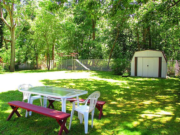Picture yourself home in this expanded cape on 0.21 acres in an established neighborhood with no through traffic. A paver walkway leads to the front door past an old fashioned wishing well cover. This inviting home with a country feel is about 60 miles south of midtown Manhattan. Nature lovers and bird watchers will enjoy the big fenced yard with mature trees, vegetable and perennial garden areas. Relax on the shady patio on those summery days or prepare a barbequed meal for outdoor entertaining. Enjoy the privacy of a wooded area behind your house. This home includes two sheds, a heated basement with a concrete floor, and many closets to provide ample storage space. The laundry area occupies a corner of the basement. The private driveway can accommodate multiple vehicles along with free street parking for your guests. The main floor bedroom is cable ready with a phone/fax outlet and can easily be your home office or guest room. There are full bathrooms on both main and second floor for convenience. This single- family home is perfectly sized for those who are new to home ownership as well as those who are downsizing.