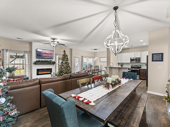 Nestled on a quiet street in Moss Grove Plantation, this traditional-style home offers comfort, style, and energy efficiency. Equipped with solar panels, energy-saving star-rated air filtration, roofing, and windows, it's designed for sustainable living with lower utility costs.Inside, enjoy laminate floors, fresh paint, high ceilings, and abundant natural light. The living room features a cozy fireplace with a custom shiplap accent wall, perfect for relaxation. The open floor plan flows into a chef-inspired kitchen with granite countertops, a subway tile backsplash, recessed lighting, and a large breakfast bar. Additional storage closet, complete with motion lighting, makes organization stylish and functional.Upstairs, the spaciousAdditional bedrooms offer plenty of space, while a loft area upstairs can serve as a game room, entertainment space, or home office. Outside, a private backyard with a custom pergola patio and fence is ideal for outdoor activities and gatherings. Community amenities include a pool, clubhouse, picnic pavilion, playground, and kayak launch. Conveniently located near shopping and dining, this home offers the perfect blend of comfort and convenience. Don't miss the opportunity to make this your new home! Schedule a showing today.