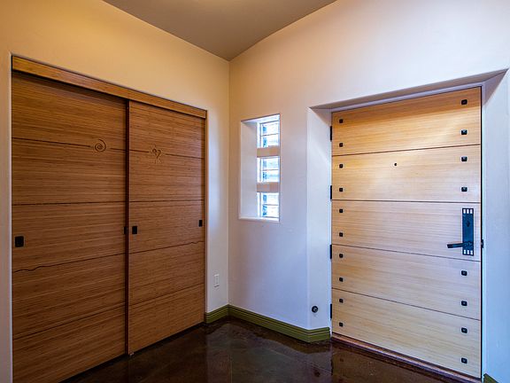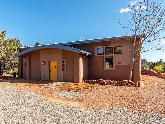 Thinking of downsizing ? Architect/owner's stunning open design lets the outdoors flow into the home. No expense was spared in creating this one bedroom, 1440 sq. ft. 1 bedroom, 1 bath perfect hideaway on almost an acre nearby forest land. Passive solar design, energy efficient. Poured cement floors with radiant heat, tall ceilings and great outdoor living areas. A cute and cozy guest house (1 living/bedroom, 1 bath plus lofts) compliments the property. Also on property: shop, storage shed and a bunkhouse with water and electricity easily available. No HOA - AirBnb OK. Verify. NOTE: See attached drawings to convert the one bedroom main home into a 2 bedroom.