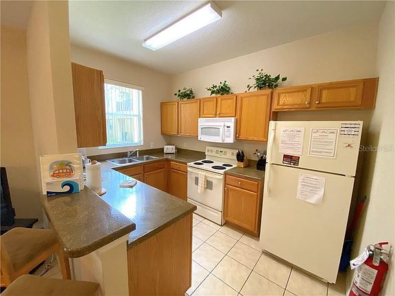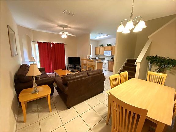 Fully furnished 3 Bedroom 3 Bath home located in the gated community of Regal Palms. The first floor has an open floorplan. The sliding glass door provides plenty of natural light to the central living area of the home. Upstairs you will find two large bedrooms both with en-suite bathrooms. The master bedroom also features a balcony for you to relax. There is a bedroom and bath for your guests on the first floor. The community provides you access to the resort amenities such as a restaurant and bar, health spa, gym, a spectacular pool area, water slides, lazy river, fitness centre, and golf course. This townhome is minutes from Disney World, other attractions, restaurants, shopping, grocery stores and golf courses. This move-in ready fully furnished townhome would be a beautiful second home, short term rental or full time residence.