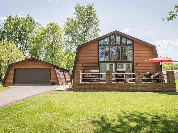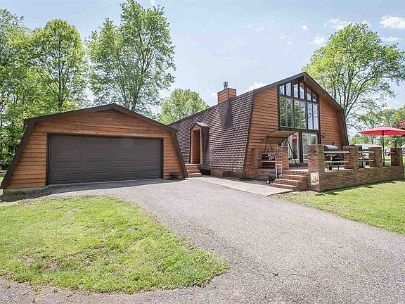 Floor to ceiling windows provide plenty of natural light in this unique home! This home has 3 bedrooms, 2 bathrooms, and a kitchen that is open to the large great room with 18 foot ceilings. Updated HVAC, flooring, and fixtures. Laundry location upstairs and down. There is also a large deck that is perfect for outdoor living. Don't miss the oversized detached garage. All this on 1.83 acres in McCracken County.