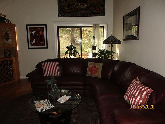 3 bedroom 2 bath private and pristine end unit townhouse condo. conveniently located in a small 26 unit complex. 1290 sq ft plus 810 sqft finished basement with family room, bedroom and kitchenette. Cathedral ceiling in living room with brick wood burning fireplace with slider to oversize deck overlooking running brook. Mechanicals all new within last 3-5 years. Appliances within last 6 years. Flooring hardwood and tile with carpets in the bedrooms. Attic with storage. large walk in closet with laundry room, 2 car garage