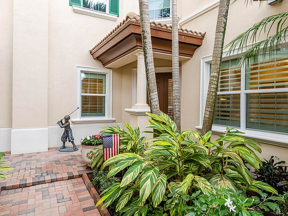 This stunning carriage home in Jupiter Country Club exudes modern sophistication and comfort. The luxurious upgrades coupled with the most breathtaking golf course & nature views from this ultra-private location make this home a very special gem that the next owner will treasure. The one-story floor plan features 3 bedrooms, 2 baths & a 2 car garage. Situated near the 9th hole, golf course & nature views from the L-shaped covered lanai are unobstructed and serene. Gather with friends and family in the open concept great room featuring a spectacular shiplap accent wall with a linear fireplace. Porcelain wood look tile floors and plantation shutters are continuous throughout the entire home. Channel your inner chef with the upgraded 5 burner gas cooktop located in the large center island with bar seating. Additional kitchen upgrades include premium solid wood cabinetry, a wine refrigerator, beautiful granite countertops, and a glass tile backsplash. The primary suite is spacious with a sitting area and the walk in closet system is optimized for maximum storage. The primary bath is spa-like with dual vanities, a makeup area, soaking tub and walk-in shower with a frameless glass enclosure with a rainfall showerhead and handheld combo system. The 2nd guest bedroom is spacious enough to accommodate your guests with a king size bed. The 3rd bedroom is stylishly designed and multi-purpose. It offers a custom designed murphy bed with 2 twin beds, closet storage, and and office desk/storage area. This energy efficient home boasts CBS construction, impact glass windows, a whole house reverse osmosis water filtration system, central vac and a tankless water heater. Jupiter Country Club is a luxury gated community conveniently located within close proximity of I-95 and the FL Turnpike, beaches, shopping, restaurants, parks & nature preserves. Club amenities include a Greg Norman designed golf course, 2 resort-style pools, the newly remodeled Sway restaurant, a state-of-the-art fitness center plus yoga/mat pilates/barre classes, tennis, bocce ball, pickle ball & basketball. Live your best life here!