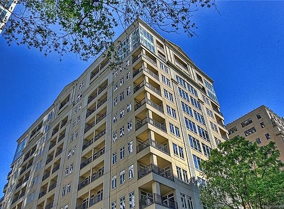 Highly desirable front corner unit with large private terrace overlooking S. Tryon St. and the Square. Spacious and highly upgraded 2 bedroom 2 bath condo with lots of natural light from windows on two sides. Condo features hardwoods, karaston carpet in bedrooms, granite/stainless, plantation shutters, and recent paint. Great master with floor to ceiling windows and custom walk-in closet with built-ins. Master bath has soaking tub, separate shower, and luxury height granite countertops. Second master with in suite bath, and custom closet with built-ins.