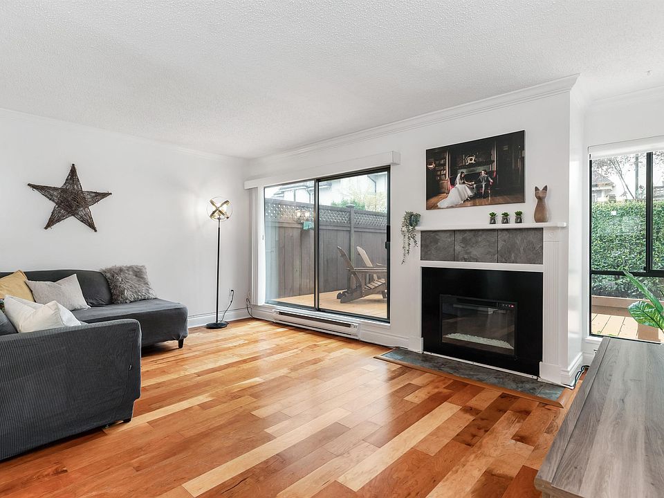The perfect three bedroom home on a quiet street in the heart of Central Lonsdale! Greet guests at your own front door & enjoy multiple outdoor spaces in this updated two level townhome. Entertain with ease on the spacious main level that features a kitchen with south facing deck - ideal for bbqs, a great room with dining area, cozy fireplace & direct access to nearly 400sf of deck & backyard area. Main level also features a tasteful powder room and insuite laundry. The upper level offers 3 bedrooms including a primary bedroom with double closets that semi ensuites to main bathroom featuring double sinks, tub/shower. 1 parking and storage locker included. Pet friendly, some rentals allowed. An incredible opportunity in one of the best and most walkable locations in North Vancouver!