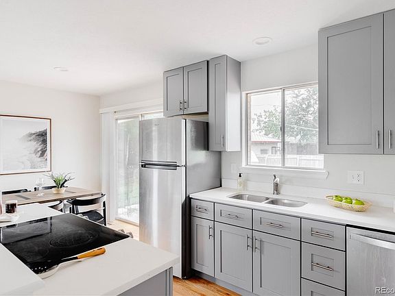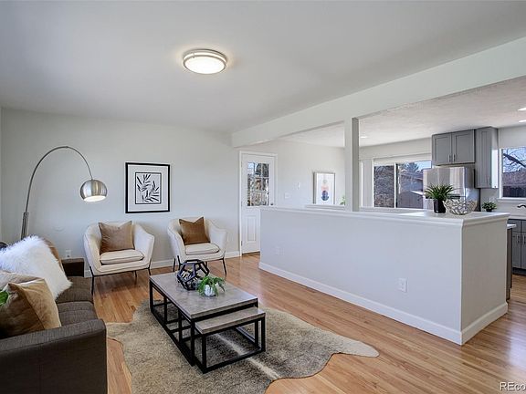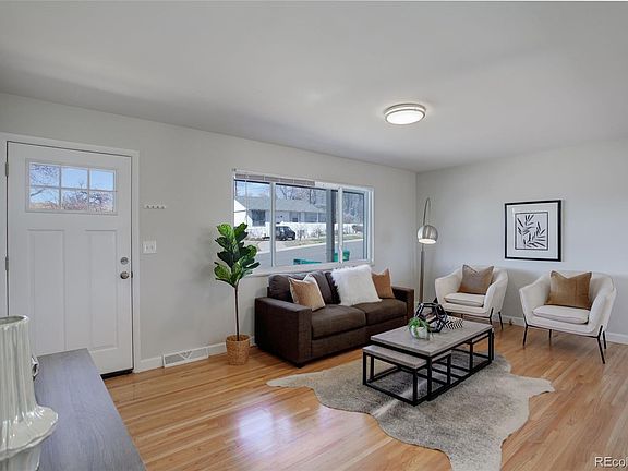 Welcome home to this updated 4 bedroom ranch in the heart of Sherrelwood. The home features hardwood floors, a remodeled kitchen, remodeled bathrooms and a large lot with great views of Denver! As you walk into the house you will notice the living room with three large windows allowing for plenty of natural light throughout the home. The living room opens up to an updated kitchen. The kitchen features new cabinets, countertops and appliances. Directly off the kitchen is a dining area and entrance to the backyard. The first floor also features two bedrooms with large windows and a remodeled bathroom. The basement offers an additional living space, two bedrooms, a recently renovated bathroom and laundry room with washer and dryer included. The home also includes a new 2020 air conditioner. This home has it all - new finishes, a great size lot, views of downtown and minutes to Denver! A new sliding glass door and front window will be installed in early April.