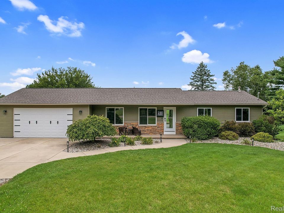 Welcome to this beautifully remodeled 1200 sq ft ranch with an additional finished basement, perfect for extra living space or entertainment. This home situated on 1 acre, has seen a host of recent upgrades, making it a standout property in the market. In 2024, a new water softener system was installed to enhance water quality throughout the home. The previous year, 2023 brought a significant transformation with numerous updates. The exterior received a new fence around the backyard, providing a secure area for kids and pets. A garage heater and new garage door were added for convenience and efficiency. Security was also a priority, with a new system installed for peace of mind. Inside, every detail has been meticulously updated. New interior doors and trim were installed, along with a new front door and window shades. The floors were upgraded to luxury vinyl plank, adding a modern and durable touch. The kitchen was completely updated with new appliances, including a refrigerator, microwave, oven, and dishwasher. The laundry room received a new washer and dryer. The entire home was complemented by fresh paint throughout the house. The bathrooms were renovated with new tile, vanities and bath fixtures. The basement was finished, providing additional living space or entertainment options. Exterior improvements include rock landscaping, new driveway stone, and a freshly painted shed. Ceiling fans and all new interior and exterior light fixtures complete the modern updates. Located with easy access to I-96 and US-23, this home offers convenient commuting options and is close to all the amenities downtown Howell has to offer. The fenced backyard is perfect for children and pets, making this home ideal for families. This home is a blend of modern updates and convenient location, making it a must-see! BATVAI, licensed real estate agent must be physically present for all showings. Schedule showing in Showtime Agent/Broker Related to Seller