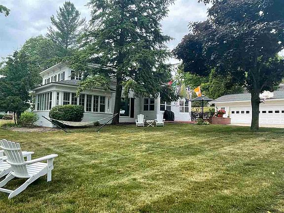 This historical & gracious home is impeccably maintained. It is situated on West Bluff Dr & offers a seasonal view of Little Traverse Bay. Only steps from downtown Harbor Springs and located on a corner double lot. It has views from almost every room. It includes four bedrooms, two and a half baths. The formal living room includes a gas fireplace, a separate dining room & an eating area off the kitchen. The sunny TV room would make a great office. The master is conveniently located on the main floor connecting to the full bath. The kitchen, dining room & sunroom offers views of downtown. Three additional bedrooms & a large full bath are upstairs. The inviting sunroom is bright & cheerful year-round. The basement is partially finished + storage areas are. Other amenities include main floor laundry, a three-car detached garage & a detached one-car garage which has the potential to be a guest house. The brick patio and large lot are ideal for entertaining. For the gardener, there is a convenient potting shed. A historic stone wall surrounds three sides of the property.