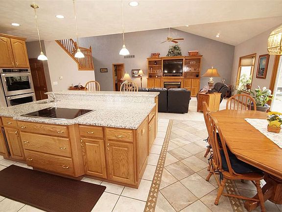 Gorgeous 4 BR, 3.5 BA home. New roof June, 2018. Wonderful open floor plan great for entertaining. Over 3600 finished sq ft. 25x16 great rm with vaulted ceiling, FP, two skylights & fully open to 25x16 kitchen. Eat-in kitchen w/ tile floor, large island/breakfast bar with granite tops & 2nd sink. 22x14 main flr MBR. Master Suite features jacuzzi tub, heated BA floor, WI shower, large WI closet. Other 3 upstairs BRs are 15x13, 14x12, 13x12 & 2 have WI closets. 35x24 (3) stall gar with Race Deck flr. Beautifully finished bsmnt with wet bar, family rm, rec rm, full BA & storage. Main flr laundry. 0.38 acre lot