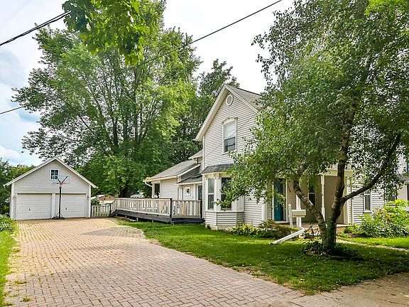 This charming, cozy two story in the heart of downtown Belvidere is ready to be your new home! So much charm with crown molding, built in shelves, wide trim, and more details to keep the cozy feel of this home. Large, bright kitchen with stainless steel appliances and eating area. A spacious living room, formal front dining room, main floor master bedroom with a walk-in closet, and full bath with laundry completes the main floor. Walk upstairs to two additional bedrooms, a second full bath, and large extra room that could be used as a workout room, office, or lounging area. Relax and enjoy the wrap around deck that over looks the fully fenced backyard. Two car garage with loft area and exterior stairs for easy access. Lots of updates featuring HVAC 2019, Water Softener 2019, new carpet 2017, wood floors 2017, deck 2017, roof 2018, new paint 2017.