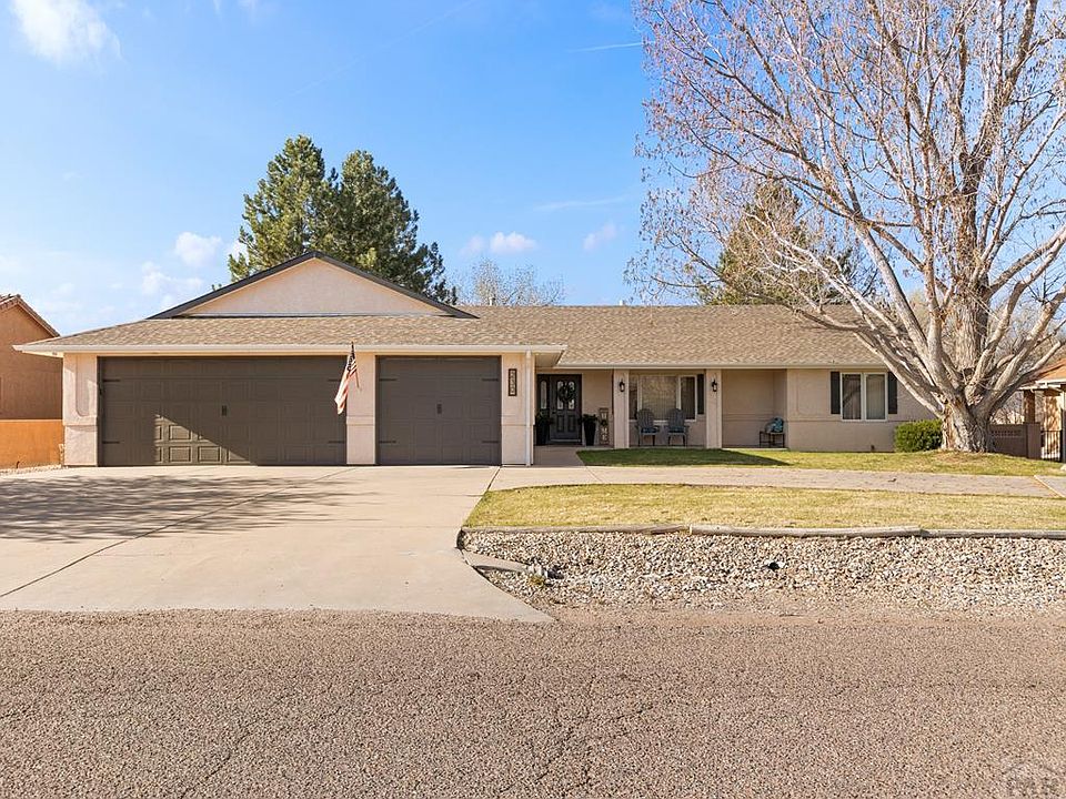 Nestled on the 11th hole of the beautiful Desert Hawk Golf Course, this exquisite ranch-style residence epitomizes the perfect blend of comfort and sophistication. As you approach, meticulously landscaped gardens greet you, leading to a grand entrance framed by a spacious three-car garage, offering both convenience and ample storage. Step inside and be greeted by the heart of the home: a gourmet kitchen adorned with luxurious granite countertops, beckoning culinary enthusiasts to unleash their creativity. Adjacent, the expansive living room, bathed in natural light from large windows, provides a sanctuary for relaxation and entertainment, where cherished moments are shared, and memories are made. With five well-appointed bedrooms, including a lavish master suite, and a fully finished basement offering versatile spaces for leisure and recreation, every corner of this home exudes comfort and functionality. Outside, the sprawling backyard sets the stage for unforgettable gatherings under the open sky, offering endless possibilities for outdoor entertainment and relaxation. This meticulously crafted home seamlessly combines thoughtful design, premium amenities, and a prime location, promising an unparalleled living experience. Don't let this opportunity slip away – make this exceptional residence yours today.