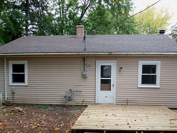 2 bedroom 1 bath home with 1.5 car garage. Central air. New windows, siding, roof, deck, paint, flooring. 600.00. Nice quiet neighborhood. New fireplace with remote. Gas stove, washer dryer. All this on nice lot with mature trees.