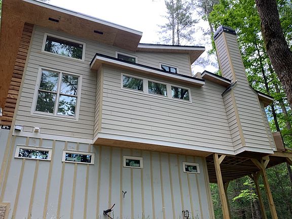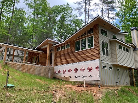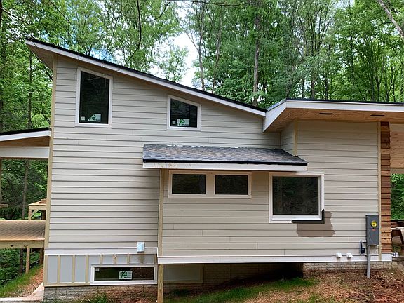Unbelievable creek frontage!! Mountain meets modern in this architecturally stunning residence. This 3/3.5 home features open spaces, natural light & clean lines. Large great room flows perfectly into the dining area & modern kitchen. Wall of windows overlooking the waterfall & swimming holes, surrounded by large boulders & towering Hemlocks. Master on main w/ private porch overlooking the rushing creek. Open terrace level features a wet bar, game area, fireplace & 2 more ensuite bedrooms. Amazing outdoor living space w/ an outdoor fireplace & lower level fire pit. Carport & paved driveway. Be one of the privileged few to call Watersong home. Only 3 miles from world famous mountain biking & hiking & only 10 minutes from historic Ellijay. Watersong offers waterfalls, trout fishing, spectacular mountain vistas, trails & conservation land, all while maintaining a sense of nature & community. All paved, gated access.