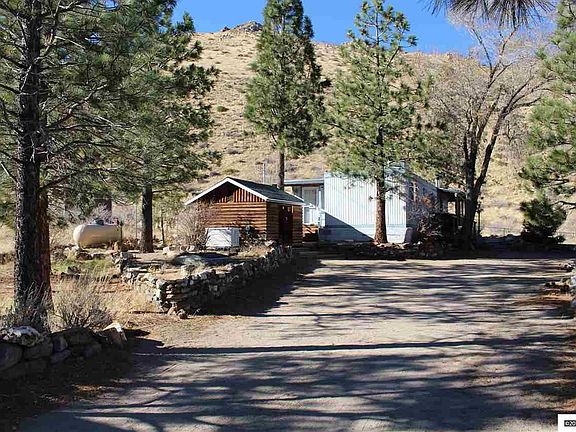 Perfect investment opportunity, get away home for fishing season, OR perhaps for someone looking to downsize.Backed by the hills, numerous mature trees, work shop, storage shed, pump house, two car detached garage, picnic area, and chain link fencing around home with automatic gate, this property truly has it all!The home itself is an unconverted manufactured/mobile home per owner.The interior of the home features a spacious living/family room with lots of natural light and a wood burning stove.