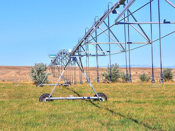 324.99 acres located deep in the country surrounded by breathtaking views of the mountains. This property includes 110 acres of alfalfa/grass mix under a 7 tower 1300 foot center pivot, and approximately 30 acres of flood irrigated dirt ditches. Historic 4 bedroom log home, rustic outbuildings, large shop, and 2 wells. Property sold "AS IS"