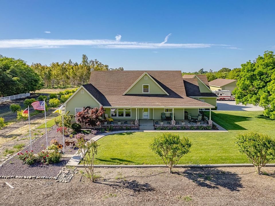 Custom Home in East Biggs. Spectacular 4.76 Acre Property Property includes 3 acres of Persimmons and dozens of fruit trees! Junior ADU above the garage perfect for in-law or teen quarters. Property also includes manufactured home, 1100 Sq ft, 2 bed and 2 Bath that is currently rented to long term tenants for residual income. In addition there is a Huge Workshop and RV parking/storage with High Clearance Roll up Doors! Home includes too many features to list! Owned Solar with Telsa Batteries, Whole House Fan, Whole House Stereo System, Central Vac, Water Softener. Custom Appliances, Granite Counters, owned Propane Tank, Huge covered porches both front and Rear, Walk in Pantry, Walk in Closets, so much more! Peaceful Country Setting yet Minutes from Highway 99 , shopping and Transportation! Don't miss this opportunity!