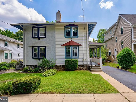 Welcome to this charming twin home on a quiet street in North Wayne, adjacent to Cowan Field and a playground, and just a few blocks to Wayne train station and town. Driveway parking for 2 cars is a plus on this small street, and the covered front porch is a welcoming entrance into the foyer with ceramic tile floor. The wide staircase is open on both sides and creates a bright main floor with Living Room and Dining Room flowing together. The spacious Kitchen features a Breakfast bar and plenty of cabinets for storage. A back entrance was added to the home and offers a Powder Room, large closet and mud room area. The second floor offers three Bedrooms and Hall bath with ceramic tile floor and tub with shower. Carpeting is found throughout the second floor and in the Living Room. The Dining Room has exposed hardwood floors. The unfinished basement houses the new washer and dryer as well as the oil tank, dehumidifier and sump pump. This home has been lovingly maintained for many years, with a roof replacement in 2007 and several new windows installed over the years as well as the addition of the half Bath, large coat closet and Mudroom . Being sold in "as is" condition, this charming twin home is available immediately. Come quickly to take advantage of this wonderful opportunity to make this special neighborhood and this home your own.