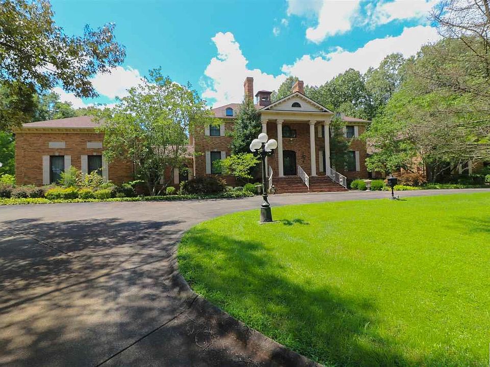 This magnificent 7.3 acre property demands your attention. Beginning with the winding concrete driveway, the appeal of this luxurious 8,627 square foot home is truly one of a kind. With a grand entrance through the double beveled glass doors, you step onto beautiful hardwood floors with wood designed inlay. The home features 5 bedrooms, 4 of them with their own ensuites. The master bedroom is located on the first floor. The home has a formal living room, dining room, great room, two sitting rooms and a large kitchen with cherry cabinetry. There are Victorian columns throughout, four fireplaces and crown moulding. Exquisite chandeliers are located in several of the rooms and some rooms have stained glass inset