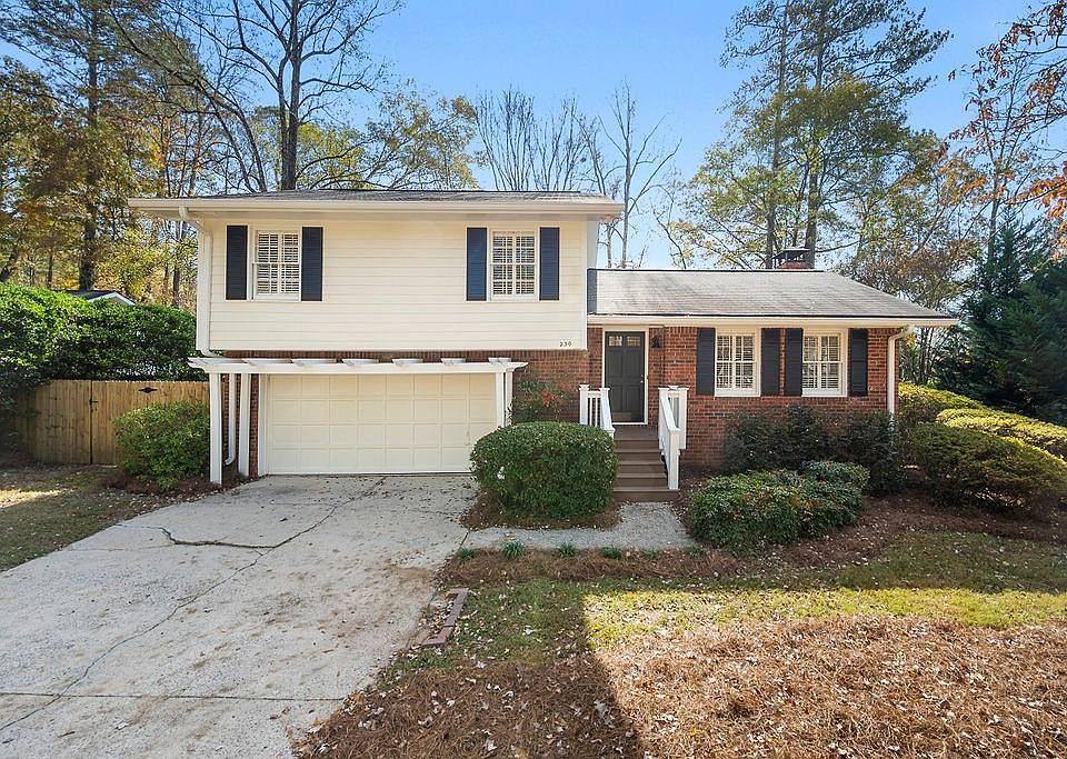 Located within walking distance of Downtown Historic Roswell, this split-level home has been beautifully maintained. Home offers wide plank white oak hardwood floors throughout, wood burning fireplace with option to covert to gas, updated kitchen with white quartz countertops, oversized garage with workshop area, and a large fenced in backyard with mature landscape and large lighted deck.