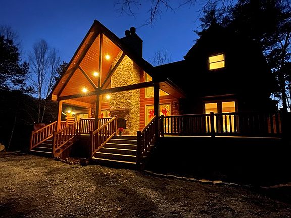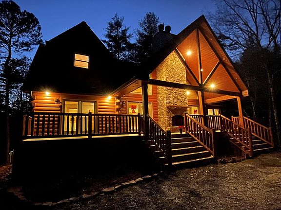 Gorgeous Log home with all the bells and whistles! The entrance is incredible with a dual stairway, covered porch and outside stacked stone fireplace. French doors are located on each side of the fireplace leading you into the Great Room. This home features a nice and open floor plan with main level living including 1st floor laundry. The great room has stunning high vaulted T&G ceilings, recessed lighting and a stacked stone gas log fireplace. Home offers granite countertops, GE stainless steel appliances, beautiful hardwood and ceramic tile flooring. Two master suites are located on the main level, both with attached bathrooms and large W/I closets. Gorgeous mountain views from great room, both master suites and the front covered porch. The 3rd bedroom is located on the second level with a sizeable attached bathroom and double vanity. The bonus room is also on the 2nd level and would work well as an office, game room or an additional sleeping area. The home is western facing, so you'll experience the mountain sunsets every evening. This beautiful log cabin home would make a fantastic vacation rental, 2nd home or full time residence. Easily accessible. Gravel driveway.
