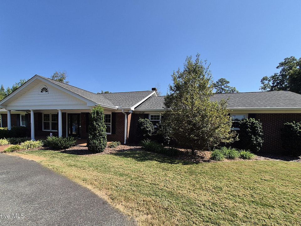 Biscoe - THIS ONE HAS IT ALL! Custom Built 3-Bedroom, 2.5-bath Brick Ranch. Features spacious den with stone fireplace, family room, gourmet kitchen with two pantries, dining room, study, office, laundry room on beautifully landscaped 11.7 acres. Enjoy the beautiful inground pool; ideal for relaxing and entertaining. This property also includes a separate 930 sq. ft, guest house; 729 sq. ft. heated and cooled out building, also additional outbuilding great for storage, a workshop or a studio. Located a short drive from the By-Pass makes it easily accessible to Asheboro, Greensboro, Southern Pines, Rockingham. Call for your appointment today! The property has two septic tanks. A 3 bedroom septic system for the home and a separate 1 bedroom septic system for the guest house. The septic tank for the primary home was pumped two years ago.
