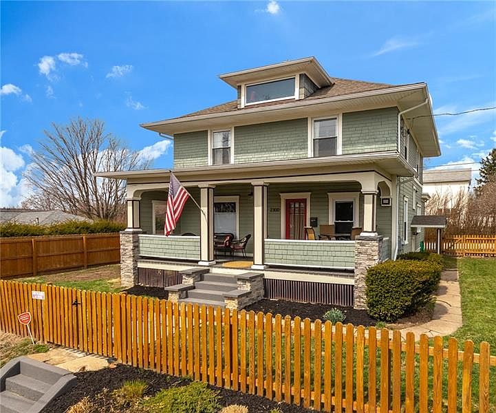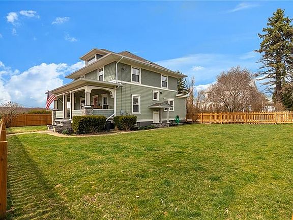 Gorgeous Farmhouse-style home with all the charm of years past plus updates to reflect today's trends. 2014 upgrades include: new roof, new heating/AC, new electrical, new plumbing, granite countertops, farmhouse sink, subway-tile backsplash, oversized island, full unfinished basement, and main level engineered hardwood flooring, decorative trim and moulding. Main floor includes kitchen, powder room, and spacious dining, living, and family rooms. Large windows on main and 2nd level allow plenty of natural light. Hardwood stairs lead to the master bedroom and en suite with clawfoot tub, subway-tile shower, and double vanity. Two additional bedrooms and full bath with shower complete the second floor, with a pass through in one bedroom leading to the third-floor bedroom/bonus room featuring a skylight and large picture window. Basement offers laundry, storage, a third full bathroom, and separate side entry. Corner lot with detached 2-car garage, custom fence, and oversized front porch.