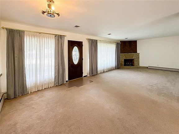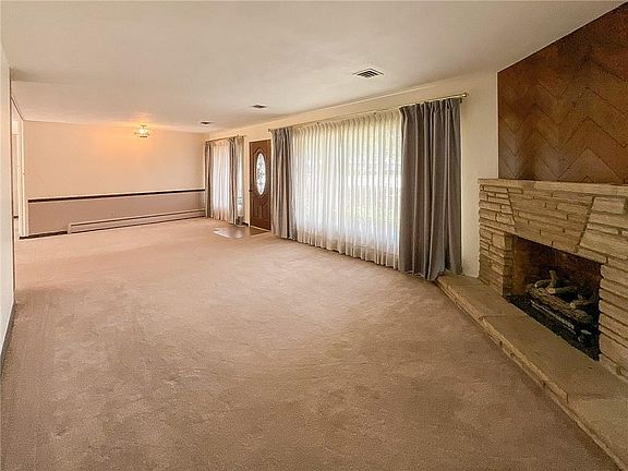 Sprawling Brick Ranch home on the market for the first time! Extra large formal living room with stone fireplace, gas logs, large picture window, dining area and built in divider for privacy. Family room open to dining space, sliding glass doors to patio and second fireplace with wood stove insert. Dream Kitchen with granite counters, custom built cabinets with baseboard pullouts, all appliances, tiled backsplash, vinyl floors and pantry. Master Bedroom with 2 walk in closets and built ins. Main bathroom with marble double vanity, shower/tub, tiled floors and lots of storage. Second bedroom with 2 closets and third bedroom with double closet. Laundry area right off garage, with large broom closet or extra pantry. Backyard with patio, BBQ area, Hot Tub and storage shed. Central heating and cooling system plus hot water heat system throughout the house