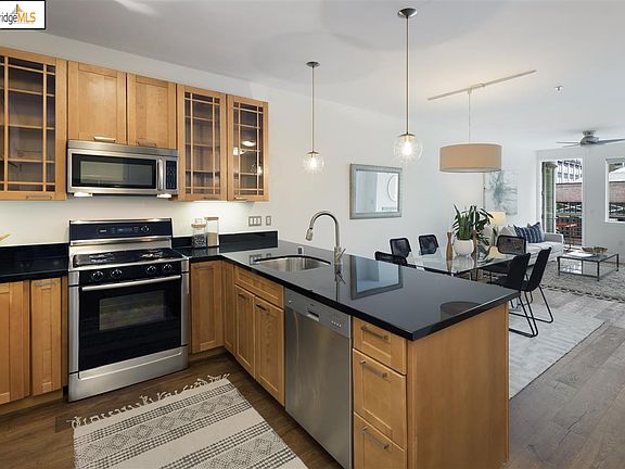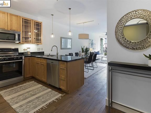 Located in the heart of Uptown this is a truly unique and sophisticated unit! Stunning kitchen with high-end stainless steel appliances, black granite countertops and wood cabinets. Open dining/living area is a spacious great room with gas fireplace and leads to your own balcony, overlooking the Town. The airy bedroom has a large window and includes a walk-in closet with smart shelving system. Fantastic plus space/alcove, ideal for a home office or makers corner. Spa-like bathroom includes a Toto toilet, shower over tub combination & glass mosaic details. Beautiful random plank wood floors throughout living area! Do not miss the in-unit washer/dryer & deeded parking space. Communal deck is also located on this floor. Less than half a mile to 19th St BART, blocks to Lake Merritt! Across the street from Dosa, Brown Sugar Kitchen, Firebrand Artisan Breads, Drake's Dealership & Calavera. Target, Whole Foods, Sprouts minutes away. A walk-score of 98, this is urban living at it's finest!