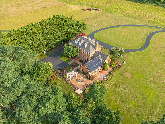 Welcome to The Estate on Carpenters Beach! This grand custom-built all-brick colonial home is perched atop a hill, offering breathtaking views of the Chesapeake Bay and private community beach access. The main level includes a bedroom that could be expanded into a primary suite. An elegant, extended circular driveway welcomes you to the residence. Designed to maximize the stunning water views, the sun-filled great room features Pella windows on all sides, a heated tile floor, a gas fireplace, and a Bose indoor/outdoor sound system. The expansive chef's kitchen is equipped with Monogram stainless steel appliances, including a gas cooktop, double convection oven, and microwave/convection oven. It also includes a large island with beautiful granite countertops, abundant high-quality Wood-Mode cabinetry, three sinks, and a gas fireplace. The main level also features a stately dining room, a sizable living room, an office, a foyer with marble floors, and a laundry room. Gleaming oak hardwood floors and solid wood interior doors run throughout the home. With the owned solar panels, electric costs remain low. Enjoy spectacular water views from the custom-designed outdoor terrace, featuring brick pavers, decorative slate edging, and artistic patterns. The peaceful outdoor living area is perfect for entertaining, dining, grilling, and steaming blue crabs. The private backyard provides a tranquil setting for sunrises and moonrises. The natural surroundings offer stunning night skies, meteor showers, full moons, and abundant wildlife, including bald eagles, ospreys, deer, and turkeys. This home is ideal for relaxing, entertaining, and enjoying a year-round vacation. It offers plenty of storage inside and out, with a large shed and an unfinished basement, which includes a rough-in for a bathroom. Take advantage of easy access to the Chesapeake Bay and all the joys of "Bay Life." You'll enjoy the peacefulness and privacy of this location while still being conveniently close to shopping, the Park and Ride bus lot, urgent care, and a short commute to the Washington Metropolitan area.