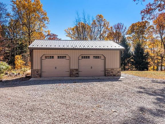 Welcome to Your Dream Retreat in the heart of Upper Bucks County! This stunning chalet offers a perfect blend of rustic charm and modern luxury. Imagine coming home to your own private oasis, complete with an inviting inground pool and a charming cabana, ideal for lounging and entertaining on warm summer days. Step inside a spacious foyer that welcomes you into the home. The living area features a magnificent double-sided stone fireplace that warms both the living and dining rooms, creating a cozy and inviting atmosphere. The home boasts beautiful hardwood floors throughout, adding a touch of elegance to the rustic design. Vaulted beam ceilings and a wood-burning stove enhance the chalet’s warm and welcoming ambiance. The eat-in kitchen is a delight, perfect for preparing meals while enjoying the company of family and friends. Adjacent to the great room, you’ll find a bar with a keg tap, making it an entertainer’s dream. Pet lovers will adore the dedicated doggie den, complete with an in-and-out door leading to a fenced play area, ensuring your furry friends have their own space to enjoy. The chalet features 2 spacious BR’s, each with its own private bath, offering comfort and privacy. One of the BR’s includes a balcony, providing a serene spot to enjoy your morning coffee while taking in the scenic views. For added convenience, there’s a laundry room on the 2nd floor, making household chores a breeze. Additionally, a powder room on the main floor adds extra convenience for