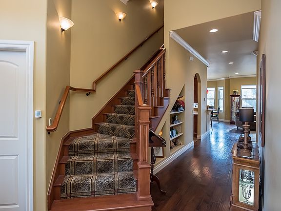 RARE FIND IN EAST EDMOND!! GORGEOUS custom 4 bed/3 bath home with thoughtful features throughout; hand-scraped wood floors, wide doorways/halls, extensive use of crown molding. Impressive entry w/ under stairway shelving/lighting. Living room has beautiful wall of windows, stately gas fireplace, floor outlets. Formal dining w/ wainscoting, built-in hutch storage. Fabulous kitchen has large working island w/ built-in microwave & storage. Ample counter/cabinet space, appliance garage, breakfast bar, walk-in pantry, pull-out drawers, 5-burner blt-in gas cooktop. Large master has tray ceiling w/ sitting area. Elegant master bath offers oversized jetted tub, walk-in shower, blt-in storage, ceiling fan, double vanities, LG walk-in closet. Generous sized secondary rooms. All bathrooms have granite. Upstairs bonus w/ blt-in desk/storage. Create your own backyard oasis! French drain w/ elec pump. STORM SHELTER! Spray foam insulation. Sprinkler sys. Mounted tvs reserved. ***See reserved list.