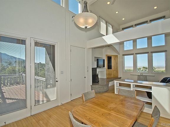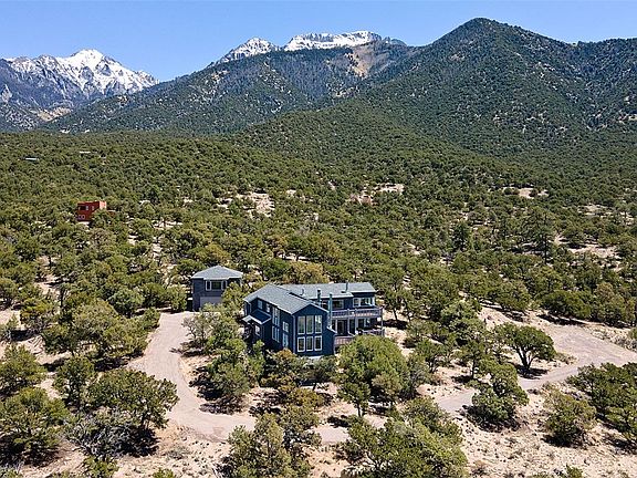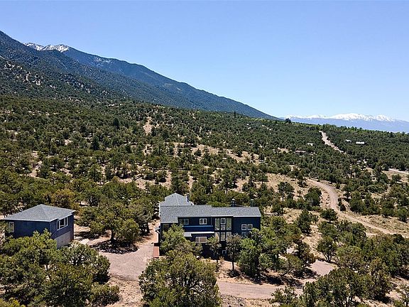 Perched high atop Clearview Overlook, this home enjoys 100-mile views along the Continental Divide from New Mexico to Salida, Colorado. It is a sanctuary of peace and tranquility, on 5 acres (10 lots; 9 consolidated) at the end of 3 cul-de-sacs, and backing-up to green-belt and the area’s many spiritual centers. No through traffic, but positioned conveniently in Chalet 1 in the Baca Grande, just 7 minutes from town. Architecturally designed, and constructed by a professional builder out of Salida, the home and casita were originally developed for Madonna’s award-winning song-writer and producer. The main home is approximately 3600 square feet, and the casita (originally a recording studio) provides an additional 500+ square feet above a well insulated 2-car garage. Expansive decks allow you to relax outside while taking in the views. The main home is completely heated by in-floor heating, and also includes 3 fireplaces. The casita includes a gas fireplace, forced air heating, air conditioning, and an infrared sauna, as well. There are 3 bedrooms with 3 full bathrooms in the main home and a ¾ bathroom in the casita. The main home also includes a beautifully styled room overlooking the living and dining rooms that could be used as a meditation area, office, or additional bedroom. Granite countertops are prevalent throughout the main home, along with alder cabinets. Many other features you must see to appreciate. The home seamlessly blends the natural beauty of the outdoors into an impressive, yet very comfortable home. Enjoy awe-inspiring sunsets, wildlife, the many old cedar trees located throughout the 5-acre property, and stargazing on crystal clear evenings from the decks or from the comfort of your living room or bedroom. Priced attractively at just $615K.